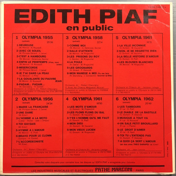 Edith Piaf - En Public (Olympia 1955 1956 1958 1961 1962) (3xLP, Comp, Bla)