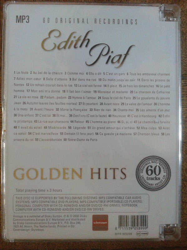 1. La Foule 2. Au Bal De La Chance 3. Comme Moi 4. Elle A Dit 5. C'Est Un Gars 6. Tous Les Amoureux Chantent 7. Adieu Mon Coeur 8. Salle D'Attente 9. Bal Dans Ma Rue 10. Du Matin Jusqu'Au Soir 11. Dans Les Prisons De Nantes 12. Un Refrain Courait Dans La Rue 13. Le Ciel Est Fermé 14. Il Pleut 15. Je Hais Les Dimanches 16. Le Petit Homme 17. Mon Ami M'A Donné 18. Il Fait Bon T'Aimer 19. Monsieur Et Madamme 20. La Chanson de Catherine 21. La Vie En Rose 22. Padam...Padam 23. Hymne A L'Amour 24. Sous Le Ciel De Paris 25. La Goualante Du Pauvre Jean 26. Autumn Leaves ( Les Feuilles Mortes) 27. Et Pourtant 28. Avant Nous 29. La Valse De L'Amour 30. L'Homme A La Moto 31. Avant L'Heure 32. Marie La Française 33. Rien De Rien 34. Chante-Moi 35. Les Amants D'Un Jour 36. Une Enfant 37. C'Est Toi 38. Et Moi... 39. Don'T Cry (C'Est La Faute) 40. Heureuse 41. C'Est A Hambourg 42. Enfin Le Printemps 43. La Rue Aux Chansons 44. Retour 45. L'Homme Au Piano 46. Si, Si, Si 47. Le Chemain Des Forains 48. Y Avait Du Soleil 49. Miséricorde 50. Légende 51. Un Grand Amour Qui S'Acheve 52. Mea Culpa 53. Avec Se Soleil 54. C'Est Merveilleux 55. Demain (Il Fera Jour) 56. Ce Geulle Ça Madamme 57. Chanson Bleue 58. Les Prisons Du Roi 59. L'Accordéoniste 60. Notre-Dame De Paris