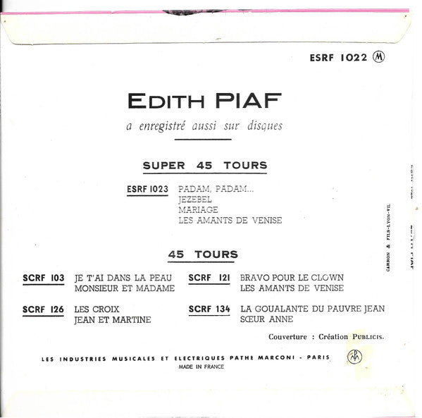 Record Company Les Industries Musicales Et Electriques Pathé Marconi Pressed By Pathé Marconi, Chatou Pressed By Pathé Marconi, Chatou Printed By Imp. Carron & Fils