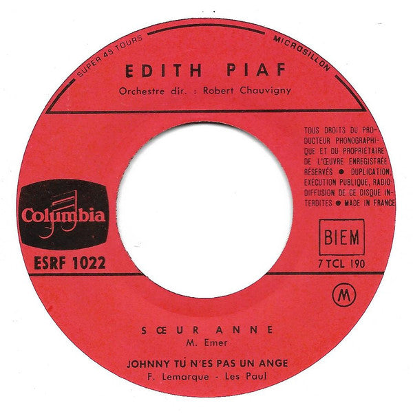 A1. La Goualante Du Pauvre Jean A2. Heureuse B1. Sœur Anne B2. Johnny, Tu N'es Pas Un Ange
