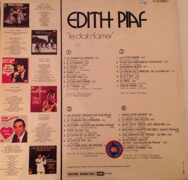 Edith Piaf - Le Droit D'Aimer (2xLP, Comp)