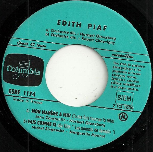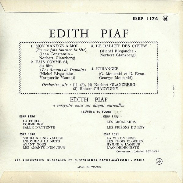A1. Mon Manège À Moi (Tu Me Fais Tourner La Tête) A2. Fais Comme Si (Du Film "Les Amants De Demain") B1. Le Ballet Des Cœurs B2. Un Étranger