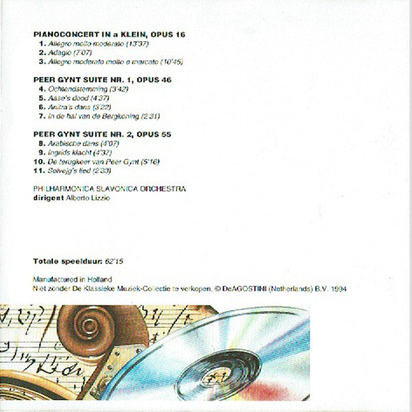 . Klavierkonzert In A-Moll, Op. 16 1. Allegro Molto Moderato 13:362. Adagio 7:073. Allegro Moderato Molto E Marcato 10:44. Peer Gynt-Suite Nr. 1, Op. 46 4. Morgenstimmung 3:425. Ases Tod 4:376. Anitras Tanz 3:217. In Der Halle Des Bergkönigs 2:33. Peer Gynt-Suite Nr. 2, Op. 55 8. Der Brautraub (Ingrids Klage) 4:069. Arabischer Tanz 4:3610. Peer Gynts Heimkehr 5:1511. Solveigs Lied 2:33