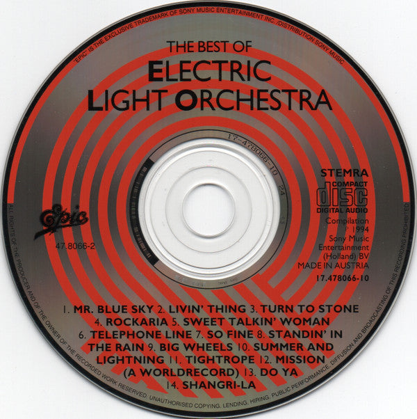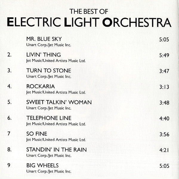 1. Mr. Blue Sky 5:052. Livin' Thing 5:493. Turn To Stone 3:474. Rockaria! 3:135. Sweet Talkin' Woman 3:486. Telephone Line 4:407. So Fine 3:568. Standing In The Rain 4:219. Big Wheels 5:0510. Summer And Lightning 4:1411. Tightrope 5:0512. Mission (A World Record) 4:2713. Do Ya 3:4514. Shangri-la 5:38