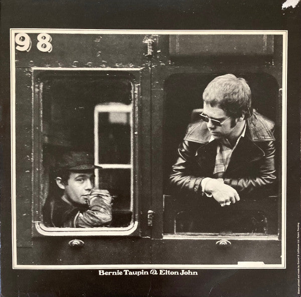 Original UK release in outside-textured gatefold sleeve (inside is smooth), on black-yellow/silver-print DJM Records labels. Earlist A1/B2 runouts. Heavy [190g black vinyl; most other releases have translucent red vinyl. First catalogue number on sleeve and booklet, second on labels. ℗ 1970 The sleeve: • Sepia outside textured gatefold with a single photographic image across both front and rear faces of the sleeve. • No writing on rear. • 12 page booklet stapled inside. All images and text on cover and in the booklet are either monotone sepia or brown printed. • The RH vertical inside edge of the back of the gatefold shows 'Sleeve printed and made by Garrod & Lofthouse Ltd. Patent Pending'. • The last page of the booklet shows 'Printed and made by the E. J. Day Group, London and Bedford'. • The track numbering on page 1 of the booklet is continuous from 1 to 10. On labels: • 'SIDE 1', 'SIDE 2' [this changed to 'SIDE ONE', 'SIDE TWO' on later releases • No 'Made in England'. • No full stops in RPM. • 33⅓ RPM shown in a larger font. • 'Sunbury' spelled correctly. • DJM Records logo and external circular text in yellow, with all other text in silver on black background. B1 appears as "Where To Now St. Peter?" in booklet, but as "Where To Now St. Peter" on label. All songs by Elton John and Bernie Taupin (except "Love Song" by Lesley Duncan for Sunshine Music Ltd.). All other lyrics © Copyright 1970 by Dick James Music Ltd., London Sleeve printed and made by Garrod & Lofthouse Ltd. Patent Pending [sleeve Printed and made by the E. J. Day Group, London and Bedford [booklet Published by Dick James Music Limited, except B2: Sunbury Music Limited - Mecolico.