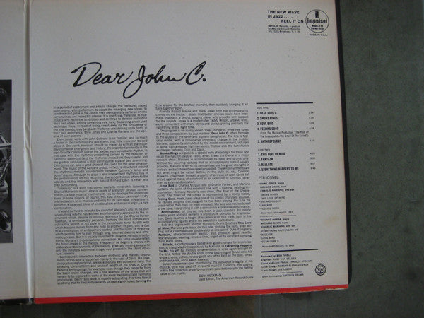 Impulse Records, a Product of ABC- Paramount Records, Inc., 1501 Broadway, N.Y.36. Glossy laminated cover front+ back With gatefold. Publishers: - A1, B3: J P B Music - ASCAP - A2: Dorsey Bros. Music, Inc. - Amerecan Acad. of Music - ASCAP - A3: Jazz Workshop - BMI - A4: Musical Comedy Productions Inc. - BMI - A5: Consolidated Music Publ., Inc. - ASCAP - B1: Embassy Music - BMI - B2; Tempo Music - ASCAP - B4: Embassy Music - ASCAP (ASCAP affiliation is wrong)