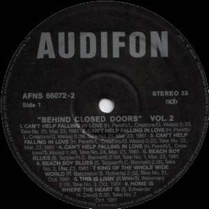 This is a reprint of the ultimate Elvis bootleg, the 4-LP boxed set: Behind Closed Doors on Audifön Records AFNS 66072-4.
