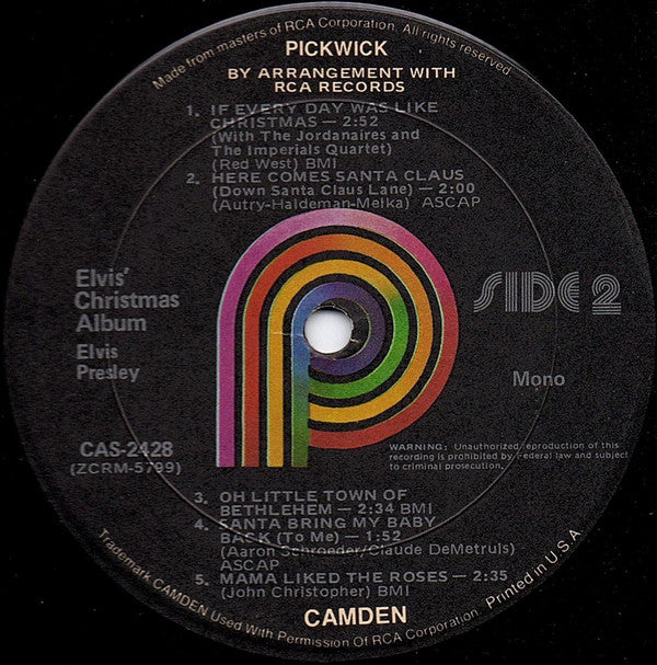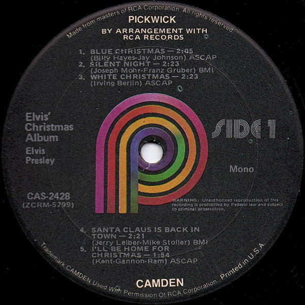 On labels: Trademark CAMDEN used with kind permission of RCA Corporation Printed in U.S.A.