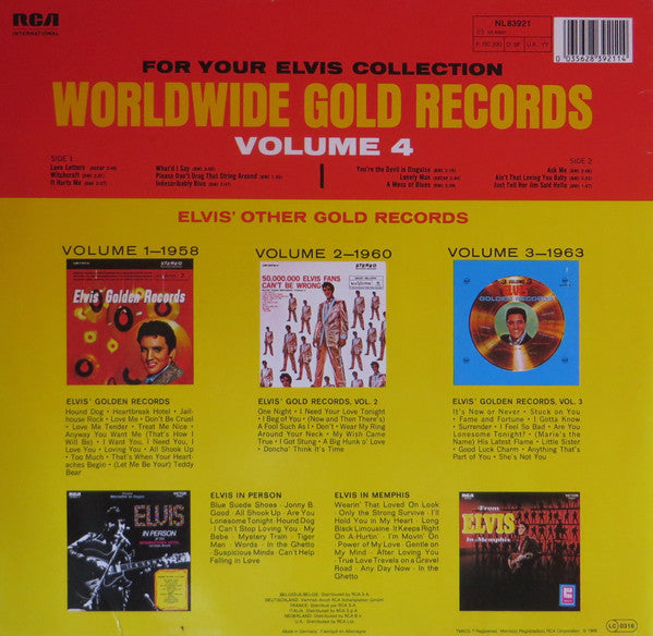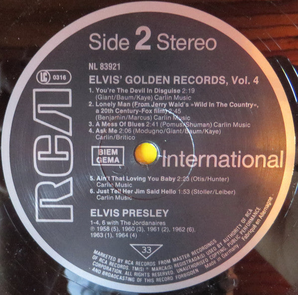 A1. Love Letters 2:48 A2. Witchcraft 2:21 A3. It Hurts Me 2:27 A4. What'd I Say 3:02 A5. Please Don't Drag That String Around 1:53 A6. Indescribably Blue 2:47 B1. You're The Devil In Disguise 2:19 B2. Lonely Man 2:44 B3. A Mess Of Blues 2:39 B4. Ask Me 2:06 B5. Ain't That Loving You Baby 2:22 B6. Just Tell Her Jim Said Hello 1:57