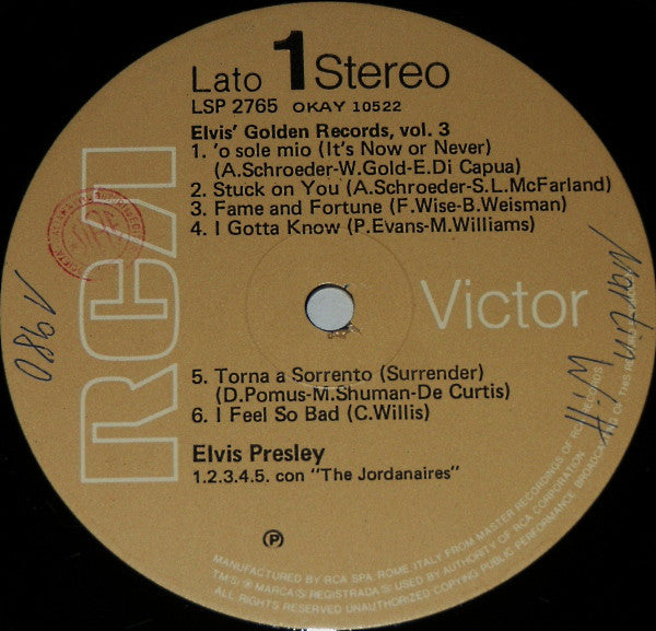 On the sleeve it says in Italian: "O Sole Mio - Torna A Surriento - Portafortuna Ed Altri.