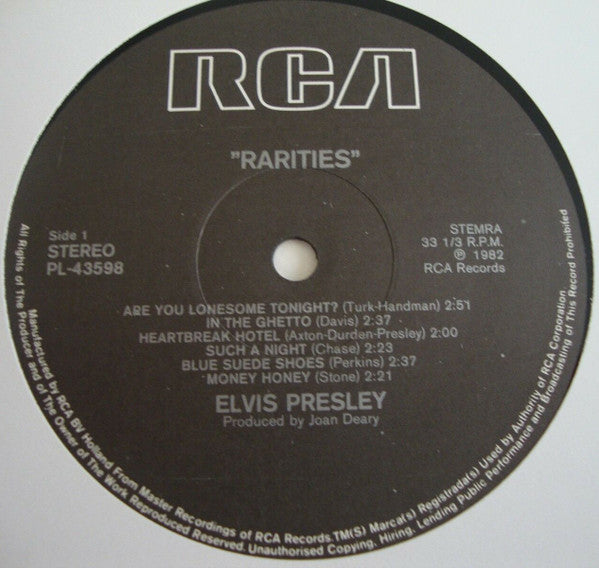 A1. Elvis Presley - Are You Lonesome Tonight? 2:51 A2. Elvis Presley - In The Ghetto 2:37 A3. Elvis Presley - Heartbreak Hotel 2:00 A4. Elvis Presley - Such A Night 2:23 A5. Elvis Presley - Blue Suede Shoes 2:37 A6. Elvis Presley, Freddy Martin And His Orchestra - Money Honey 2:21 B1. Elvis Presley - I Will Be True 2:34 B2. Elvis Presley - I'm Leavin' 3:48 B3. Elvis Presley - Beyond The Reef 3:06 B4. Elvis Presley - It's Only Love 2:42 B5. Elvis Presley - You've Lost That Lovin' Feelin' 4:15 B6. Elvis Presley - Can't Help Falling In Love 1:48