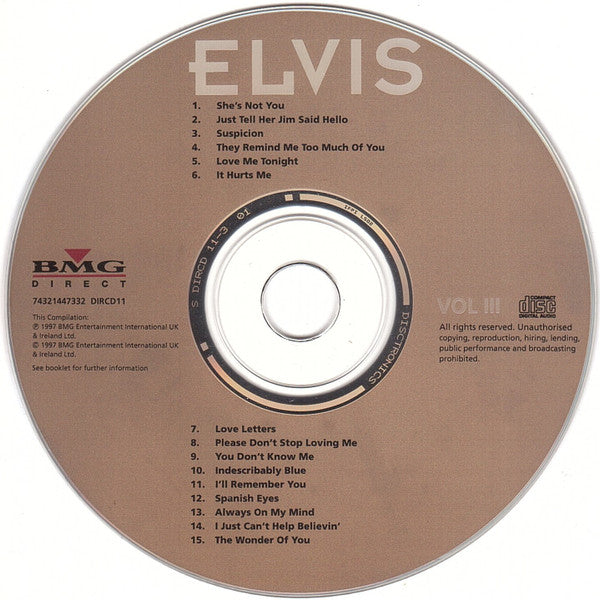 1. She's Not You 2. Just Tell Her Jim Said Hello 3. Suspicion 4. They Remind Me Too Much Of You 5. Love Me Tonight 6. It Hurts Me 7. Love Letters 8. Please Don't Stop Loving Me 9. You Don't Know Me 10. Indescribably Blue 11. I'll Remember You 12. Spanish Eyes 13. Always On My Mind 14. I Just Can't Help Believin' 15. The Wonder Of You