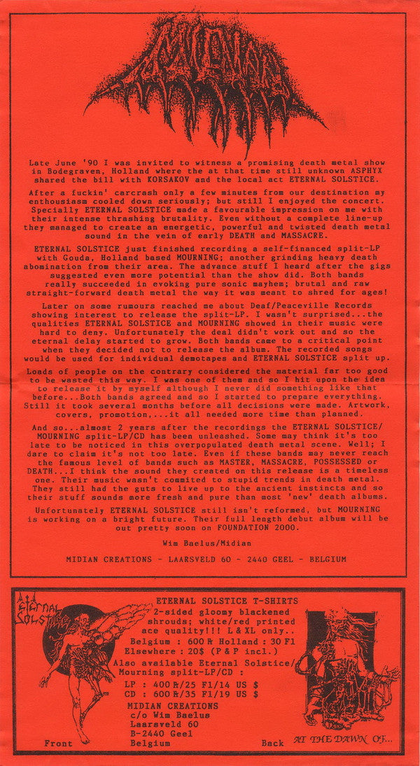 Mourning tracks recorded & mixed at Joe's Garage, Waalwijk, 15 June 1990.