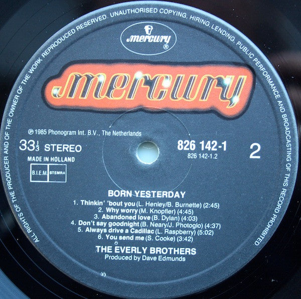 A1. Amanda Ruth 3:17 A2. I Know Love 2:37 A3. Born Yesterday 4:00 A4. These Shoes 3:45 A5. Arms Of Mary 2:25 A6. That Uncertain Feeling 3:11 B1. Thinkin' 'Bout You 2:45 B2. Why Worry 4:45 B3. Abandoned Love 4:03 B4. Don't Say Goodnight 4:37 B5. Always Drive A Cadillac 5:02 B6. You Send Me 3:42