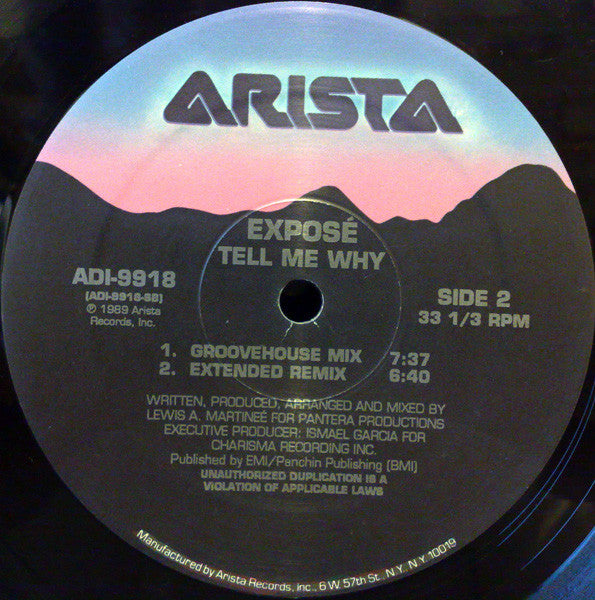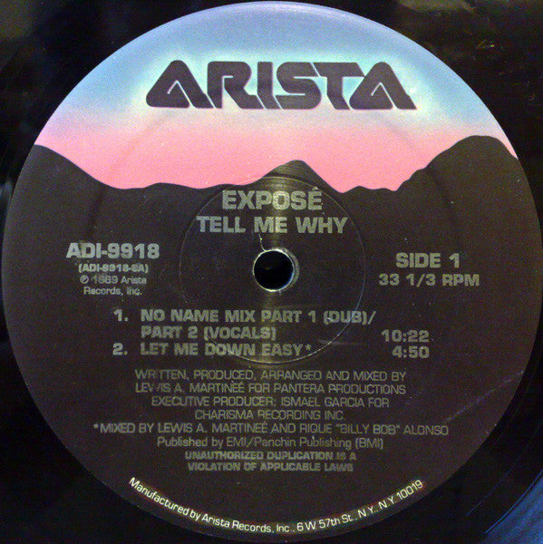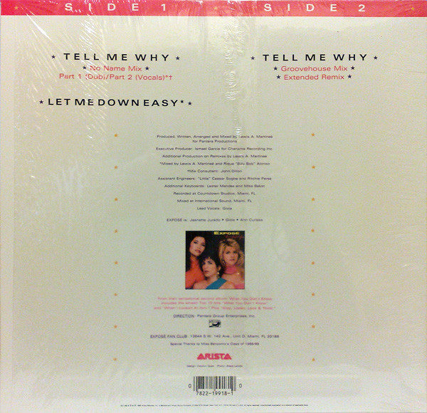 A1. Tell Me Why (No Name Mix - Part 1 (Dub) / Part 2 (Vocals)) 10:22 A2. Let Me Down Easy 4:50 B1. Tell Me Why (Groovehouse Mix) 7:37 B2. Tell Me Why (Extended Remix) 6:40