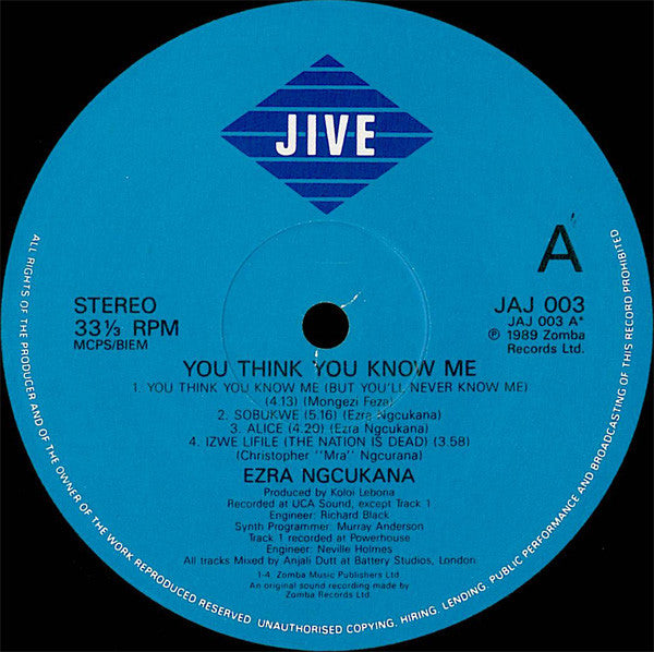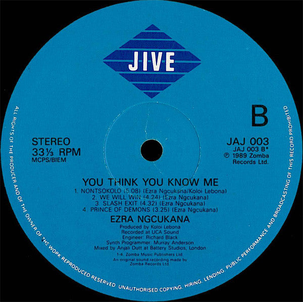 A1. You Think You Know Me (But You'll Never Know Me) A2. Sobukwe A3. Alice A4. Izwe Ufile (The Nation Is Dead) B1. Montsokolo B2. We Will Win B3. Slash Exit B4. Prince Of Demons