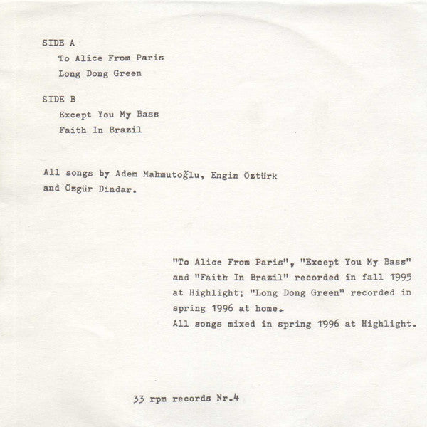 All songs mixed in spring 1996 at Highlight.