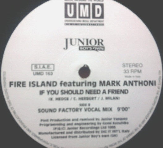 Fire Island Featuring Mark Anthoni - If You Should Need A Friend (2x12")