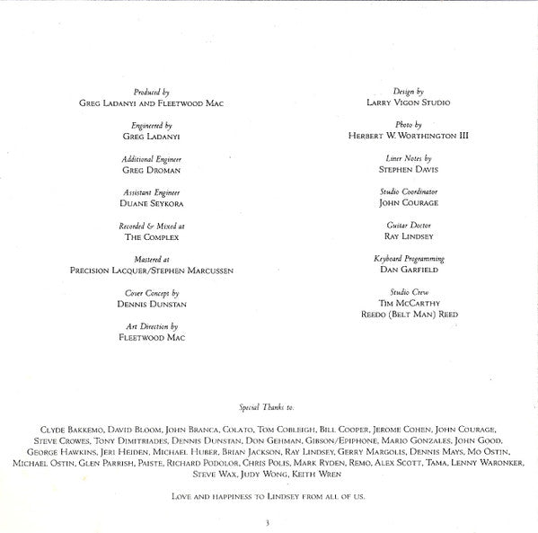 tracklisting, detailed songs credits, album credits & thanks, group photo (centerfold), 1988 liner notes by music journalist Stephen Davis.
