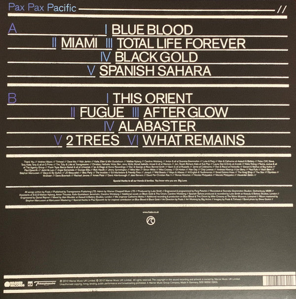 2022 reissue with updated Warner logo on bottom left of rear sleeve and labels. No label code. Inside the cover the rear cover design is printed mirrored in white on blue ground. Includes black cardboard inner sleeve Album title is not printed but stickered on front cover with transparent sticker. ℗ & © Warner Music UK Limited Recorded at Svenska Grammofon Studion, Gothenburg Spanish Sahara produced and recorded and mixed at Assault & Battery Studios, London Additional recording and production on Blue Blood & This Orient at The Motor Museum, Liverpool Mastered at Marcussen Mastering Made in Germany.