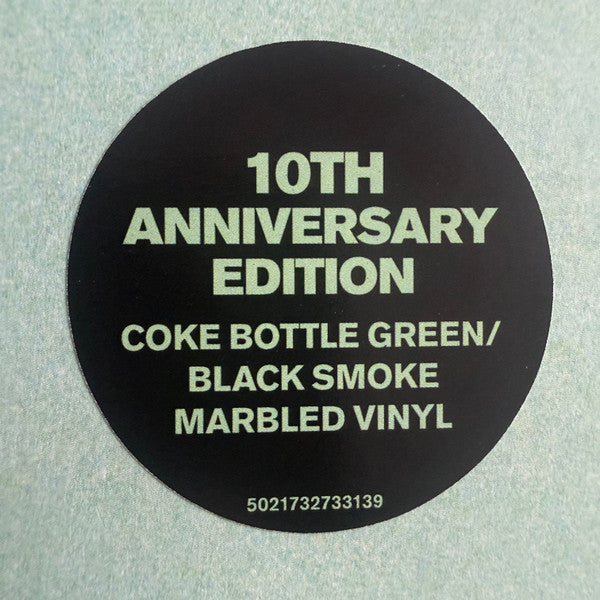 Gatefold cover. Embossed album title and band name. Sticker states “10th anniversary edition” “coke bottle green/black smoke marbled vinyl”