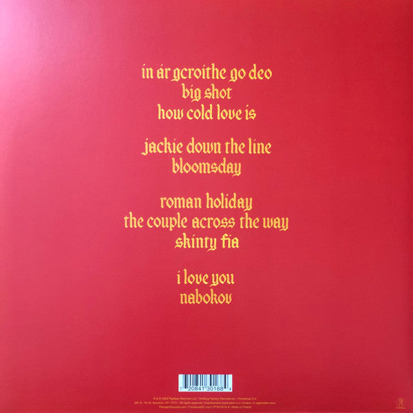 Deluxe edition featuring alternate artwork. Gatefold cover with printed cardboard inner sleeves and 20-page 12" lyric book. ℗ & © 2022 Partisan Records LLC / Knitting Factory Records Inc. / Fontaines D.C. 281 N. 7th St. Brooklyn, NY 11211. Made in Poland Recorded at Angelic Studio