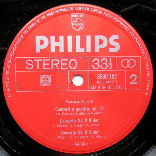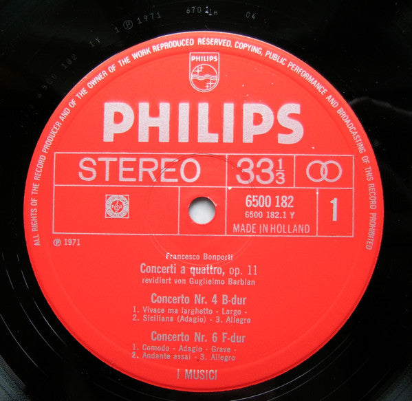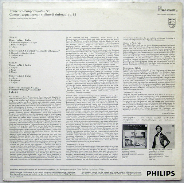 Francesco Antonio Bonporti, Roberto Michelucci, Francesco Strano, I Musici - 4 Concerti A Quattro (LP, Album)