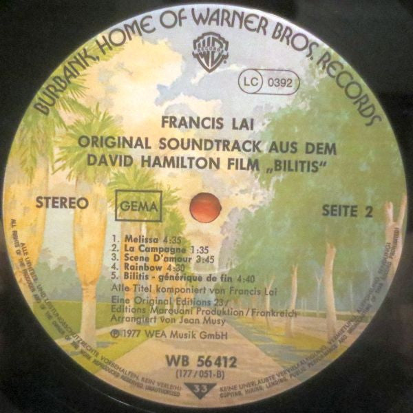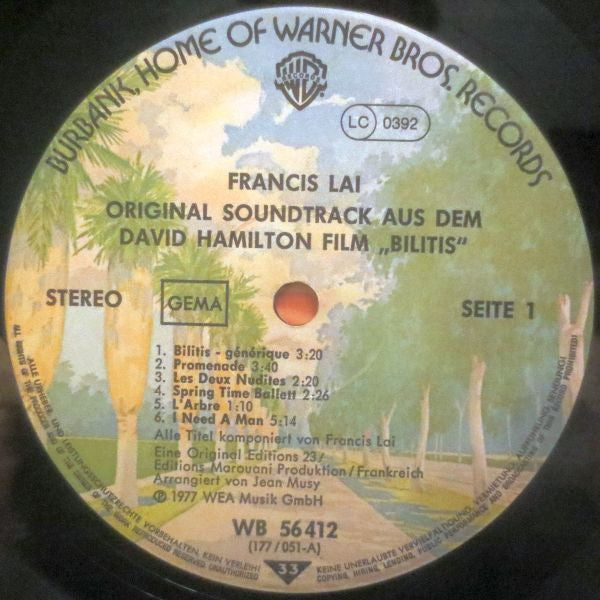 Title on the front: Bilitis Original Filmusik aus dem gleichnamigen Constantin-Film von David Hamilton Musik von Francis Lai