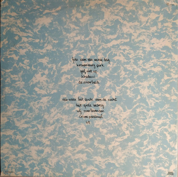 Opgenomen in Soundpush Studio's Blaricum Februari/Maart 1985 voor Marlstone Recordings B.V. Met dank aan: Jaap Eggermont en alle medewerkers van Soundpush en John Smit Algehele begeleiding: Paul Schouwenaars Met dank aan: Nico en de Crew