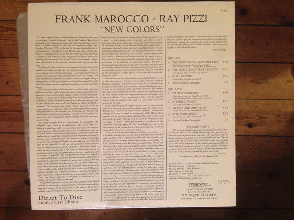 Frank Marocco, Ray Pizzi - New Colors (LP, Ltd, Dir)