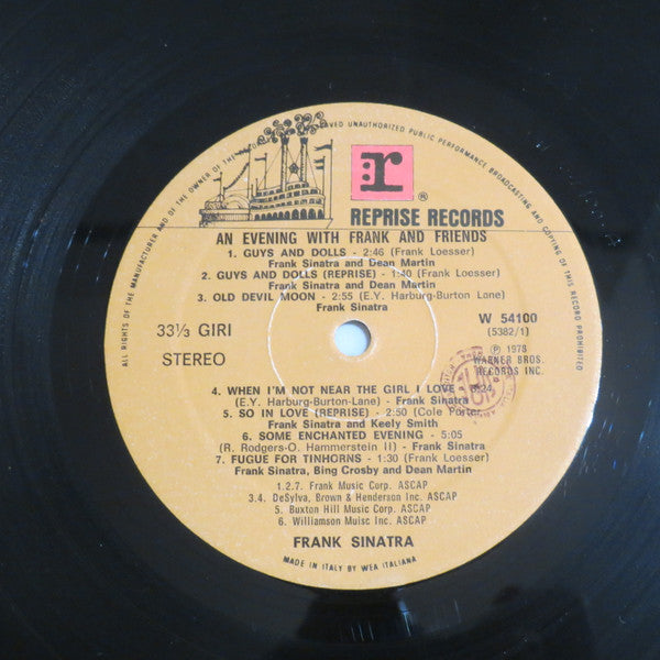 A1. Guys And Dolls 2:46 A2. Guys And Dolls (Reprise) 1:40 A3. Old Devil Moon 2:55 A4. When I'm Not Near The Girl I Love 3:24 A5. So In Love (Reprise) 2:50 A6. Some Enchanted Evening 5:05 A7. Fugue For Tinhorns 1:30 B1. Some Enchanted Evening (Reprise) 3:21 B2. Twin Soliloquies 1:36 B3. I've Never Been In Love Before 2:55 B4. We Open In Venice 2:12 B5. This Nearly Was Mine 2:45 B6. The Oldest Established 2:31 B7. Luck Be A Lady 5:15