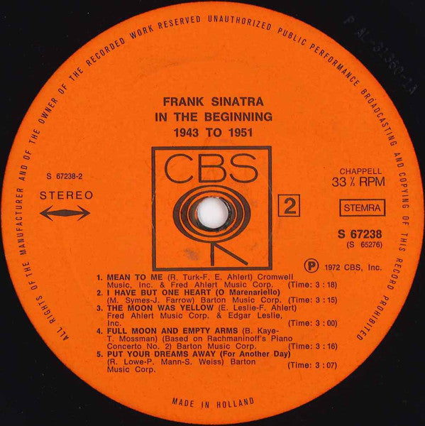 Frank Sinatra - In The Beginning 1943 To 1951 (2xLP, Comp)