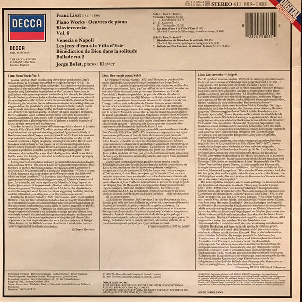 Franz Liszt, Jorge Bolet - Piano Works = Oeuvres Pour Piano = Klavierwerke Vol. 6 (LP)