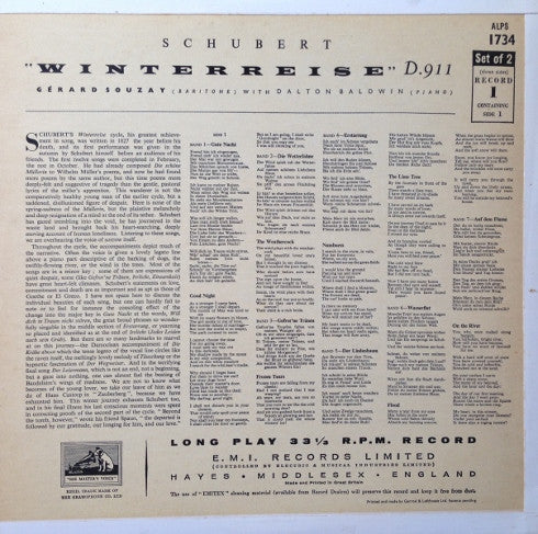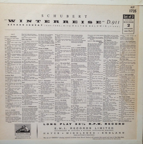 Franz Schubert / Winterreise / Gérard Souzay - Die Winterreise (2xLP, Album, Mono, Etch)