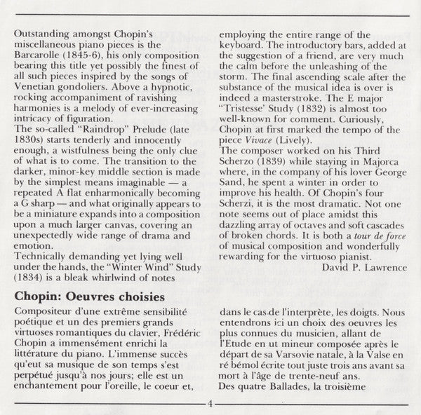 Booklet notes in English, French and German