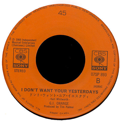 Artist name also written in Japanese as G.I. オレンジ (literally Orenji) on front and interior of four page insert.