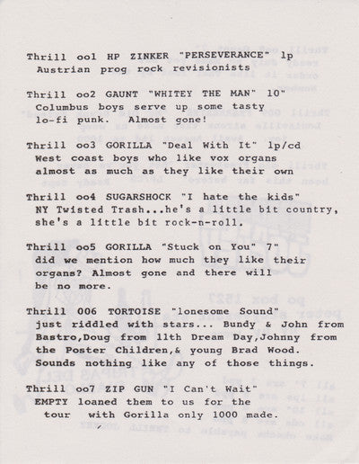 Includes small Thrill Jockey catalog insert going up to release #10.