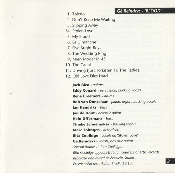 Recorded at Zeezicht Studio, Spaarnwoude, Holland, September-October 1991.