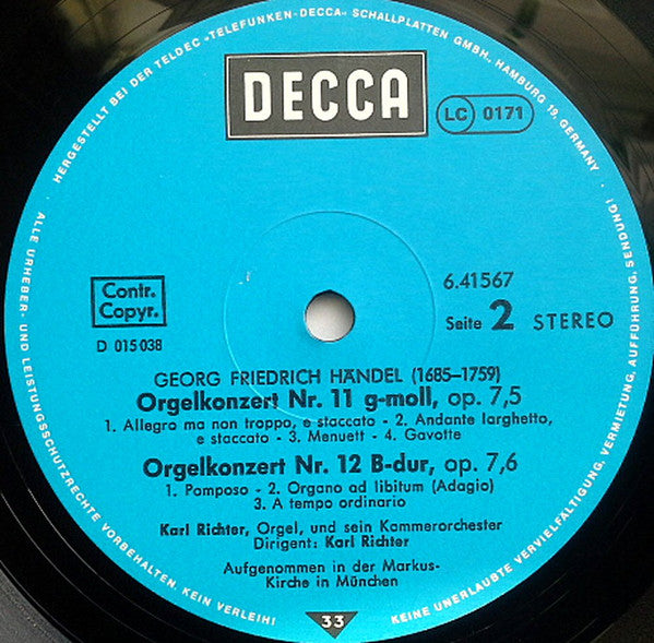 Aus der Kassettenausgabe der 12 Orgelkonzerte op. 4 und op. 7