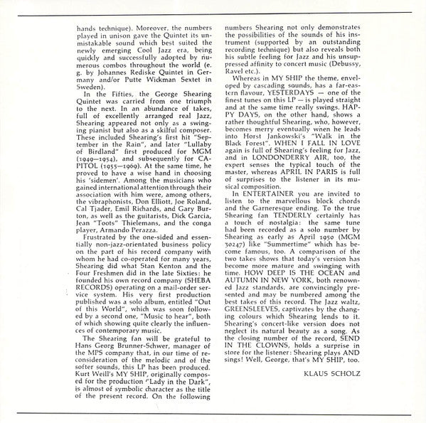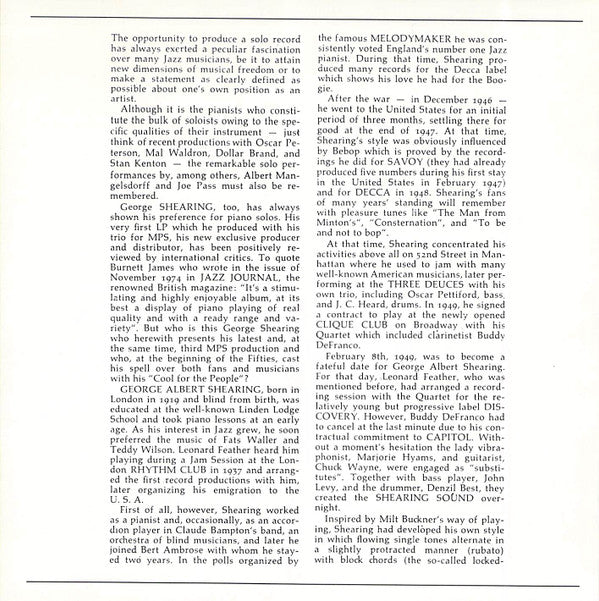 Piano Solo recorded June 25, 1974 in Villingen, Germany by Hans-Georg Brunner-Schwer in his private studio.