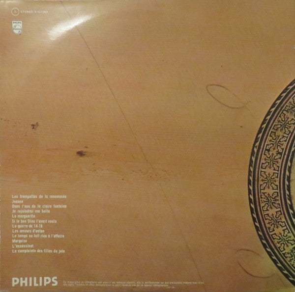 A1. Les Trompettes De La Renommée 5:12 A2. Jeanne 3:02 A3. Dans L'Eau De La Claire Fontaine 2:10 A4. Je Rejoindrai Ma Belle 1:55 A5. La Marguerite 2:25 A6. Si Le Bon Dieu L'Avait Voulu 1:28 B1. La Guerre De 14-18 2:00 B2. Les Amours D'Antan 3:13 B3. Le Temps Ne Fait Rien A L'Affaire 2:06 B4. Marquise 2:12 B5. L'Assassinat 3:41 B6. La Complainte Des Filles De Joie 2:40