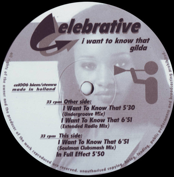 A1. I Want To Know That (Undergroove Mix) 5:30 A2. I Want To Know That (Extended Radio Mix) 6:51 B1. I Want To Know That (Soulman Clubsmash Mix) 6:51 B2. In Full Effect 5:50