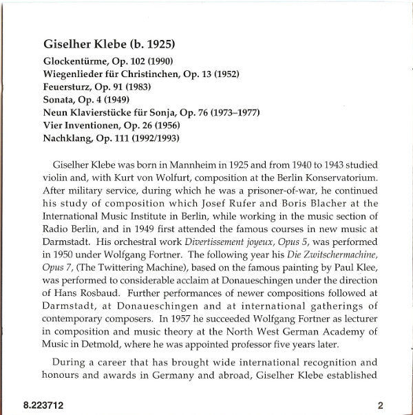 ℗ & © 1995. Made in Germany. Comes in a standard-size jewel case. 16pp stapled booklet has notes in English & German (translations uncredited). Playing time 79:06.