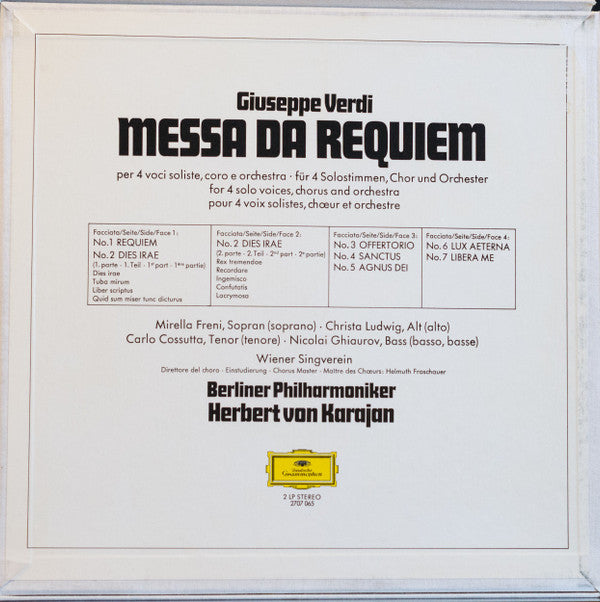 Giuseppe Verdi, Herbert Von Karajan, Berliner Philharmoniker, Mirella Freni, Christa Ludwig, Carlo Cossutta, Nicolai Ghiaurov, Wiener Singverein - Messa Da Requiem (2xLP + Box)