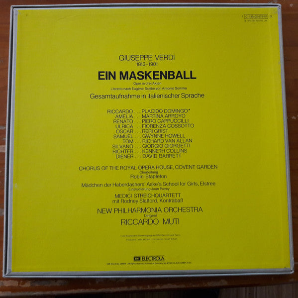 Giuseppe Verdi, Martina Arroyo, Placido Domingo, Piero Cappuccilli, Fiorenza Cossotto, Reri Grist, Chorus Of The Royal Opera House, Covent Garden, New Philharmonia Orchestra, Riccardo Muti - Ein Maskenball (Un Ballo In Maschera) (Box, Album + 3xLP, Quad)