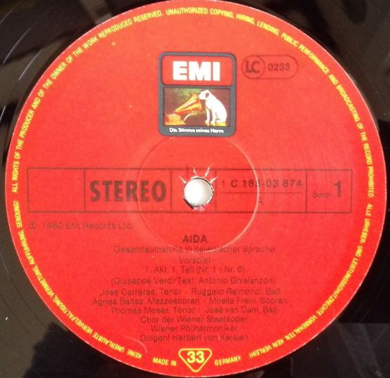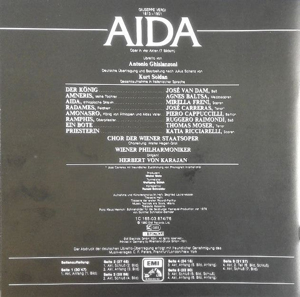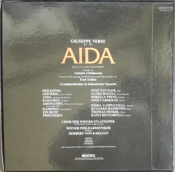 Giuseppe Verdi, Mirella Freni, José Carreras, Agnes Baltsa, Piero Cappuccilli, Ruggero Raimondi, José van Dam, Katia Ricciarelli, Thomas Moser, Wiener Staatsopernchor, Wiener Philharmoniker, Herbert Von Karajan - Aida (3xLP, Album + Box)