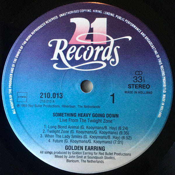 A1. Long Blond Animal 6:24 A2. Twilight Zone 9:35 A3. When The Lady Smiles 6:52 A4. Future 7:01 B1. Something Heavy Going Down 4:40 B2. Enough Is Enough 4:11 B3. Mission Impossible 8:49 B4. Clear Night Moonlight 6:44
