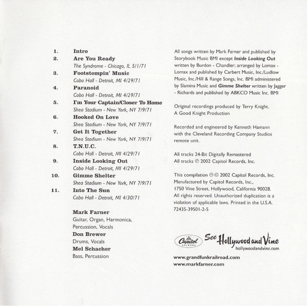 Tracks 3, 4, 8, & 9 recorded at " Cobo Hall " April 29, 1971, Detroit.