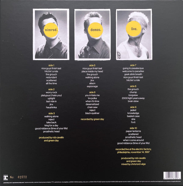 Side D is etched with Nimrod. era "Green Day" logo.