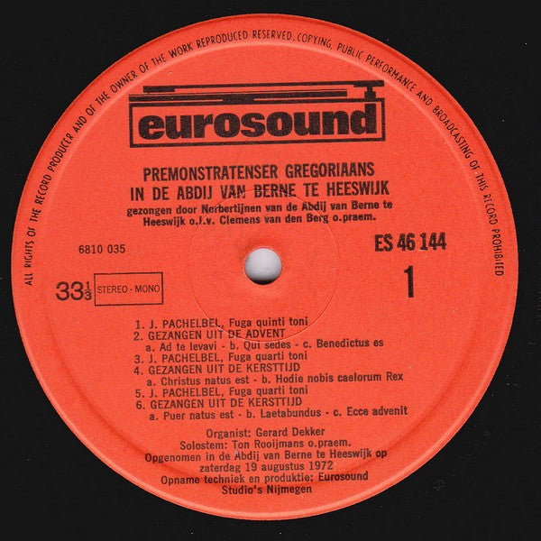 Gregorian Gezongen Door Norbertijnen Van De Abdij Van Berne Te Heeswijk Onder Leiding Van Clemens van den Berg, Gerard Dekker - Premonstratenser Gregoriaans In De Abdij Van Berne Te Heeswijk (LP)